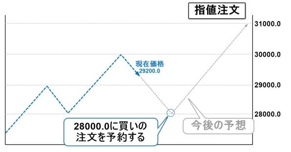 指値注文は現在価格よりも有利な位置に価格を指定して発注を行う注文方法です。有利な位置とは買いで考えている場合は今よりも安い価格、売りで考えている場合は今よりも高い価格のことを指し、今よりも有利な価格を指定して注文を出すことで損失を抑え利益を増やすことができます。注文を出した後は指定した価格までレートが到達した時点で自動で注文が約定されます。