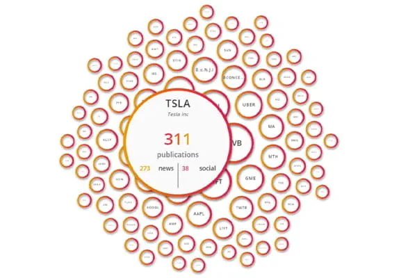 自然言語処理と人工知能を搭載し、2,500以上のニュース出版物、2,000以上のブログ、選択した市場のソーシャルメディアチャンネルを分析し、最も話題になった論点、ニュース量、主要技術詳細、市場センチメントレベルを、使いやすいインターフェースで表示しています。