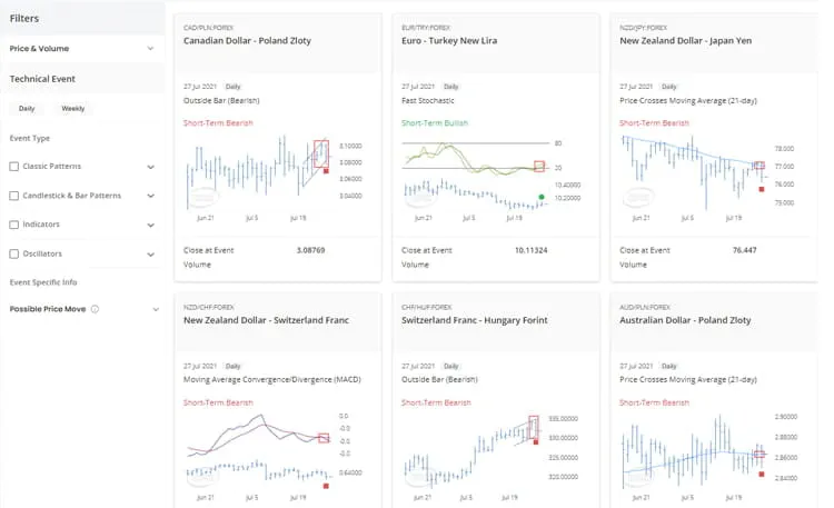 当社のリサーチポータルは、幅広い指標とオシレーターを使用し、チャートのパターンをスキャンして、買いと売りの両方のトレードアイデアを提供します。
