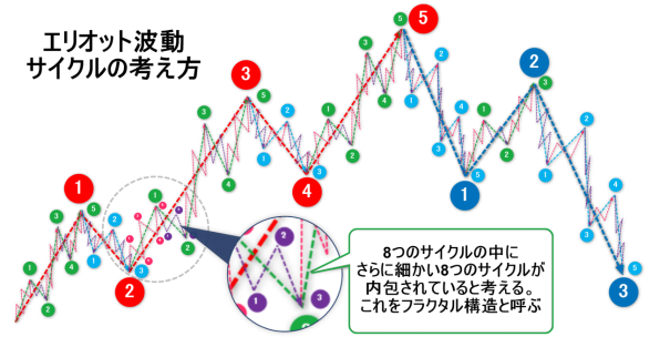 エリオット波動はチャートに一定の波のパターンを当てはめ相場の方向性を予測し、押し目や戻り目の到達点、値幅の出やすい第3波など有利に取引を進められる場所があらかじめ想定できるテクニカル分析です。この記事ではエリオット波動の基礎から基本原則、フィボナッチリトレースメントを組合わせた使い方など、エリオット波動を使ってチャート分析をするために必要な知識を解説していきます。