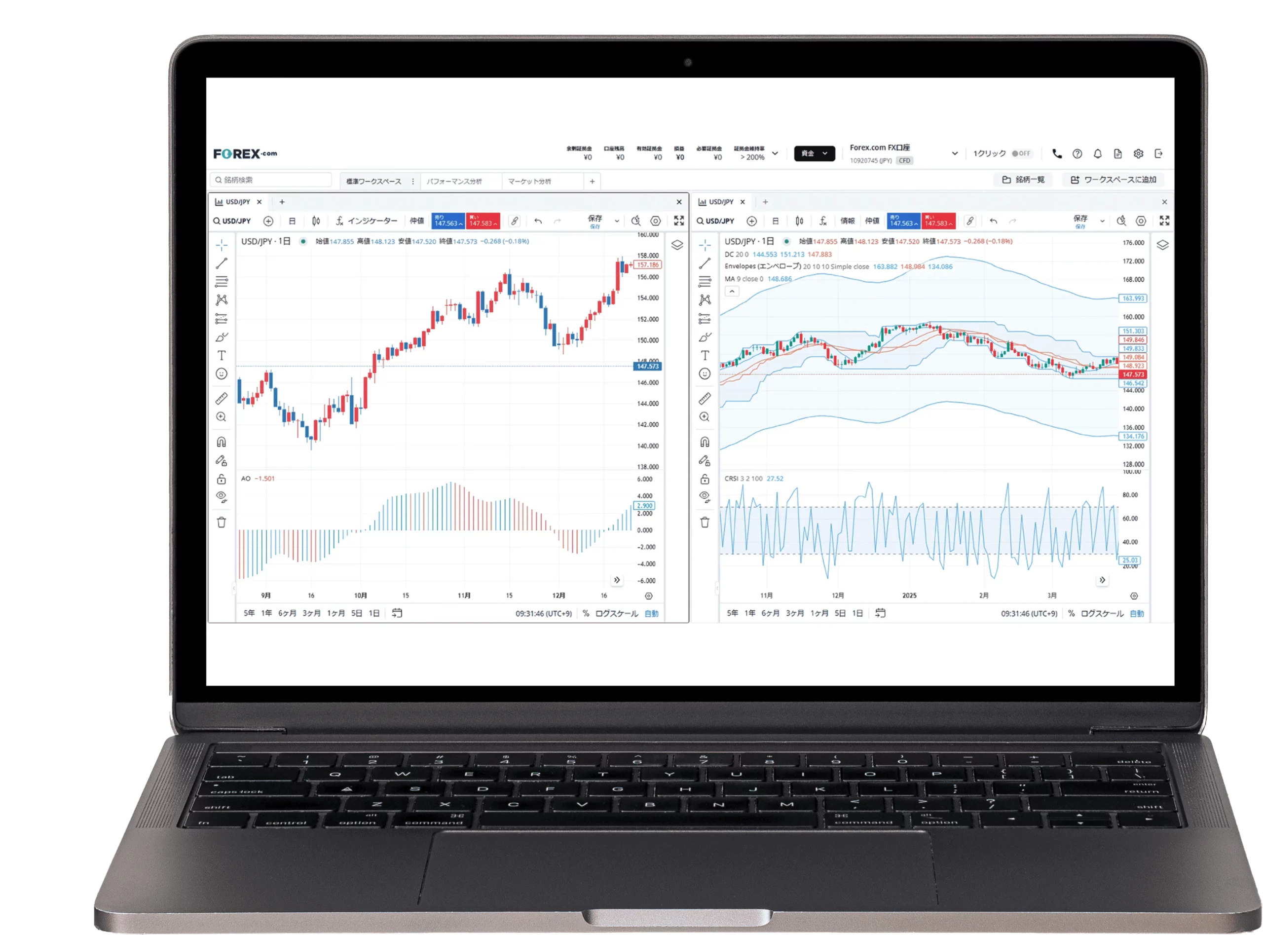 世界のトレーダーに人気のTradingViewチャートを搭載した当社の取引ツールは、80種類以上のインジケーター、50種類の描画ツール、14種類の時間軸、多数のカスタマイズ機能が搭載されています。